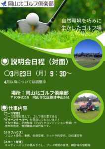 岡山北ゴルフ倶楽部では、3月23日と4月23日に会社説明会を実施予定です。